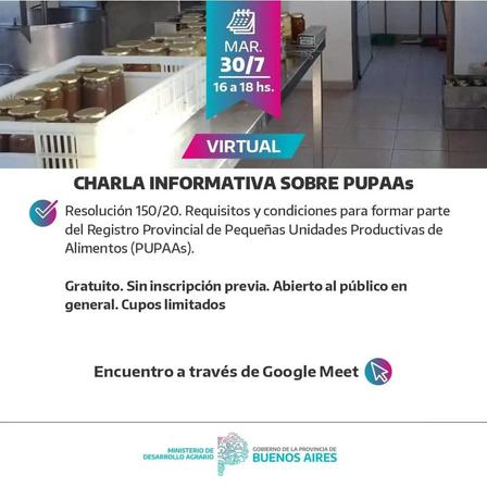 La oficina municipal del distrito acercó información del Ministerio de Desarrollo Agrario sobre una capacitación virtual del programa Pequeñas Unidades Productivas de Alimentos Artesanales.