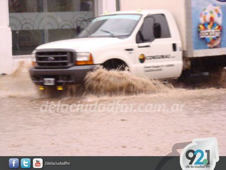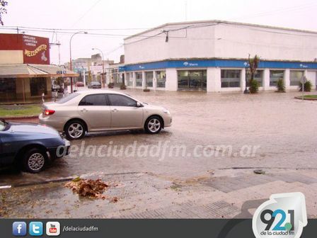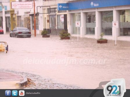 Como consecuencia del fuerte temporal que azota a la localidad desde aproximadamente las 15.00 horas, los servidores públicos, alertados por el ingreso de agua tanto a viviendas como a comercios de calle España, se acercaron al lugar, cerca de las 17.45 horas, y procedieron a interrumpir el paso vehicular.