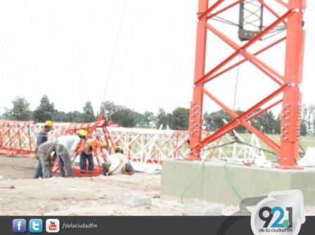 Tal como anunciara el intendente Ricardo Móccero ante los micrófonos de LU36, en el predio donde se trabaja en la construcción de la torre de la TV digital, abierta y gratuita, lindante a la ruta 85 y al Parque “Héroes de Malvinas”, se comenzó a levantar la monumental antena de 150 metros de altura, que está sujetada por 6 anclajes de aproximadamente 110 metros.