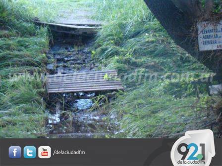 La estructura de hierro y madera no logró soportar la presión ejercida por la crecida del Arroyo Pigüé que generó algunos destrozos e hizo que ambos puentes sean desplazados algunos metros.
