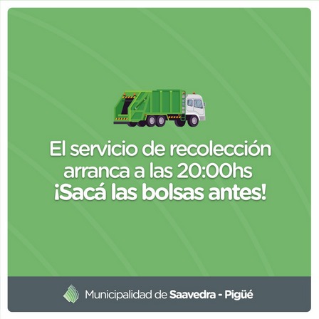 Las bolsas deberán sacarse a los canastos, de 18.00 a 20.00 horas, ya que, la recolección comenzará luego de las 20.00 horas.