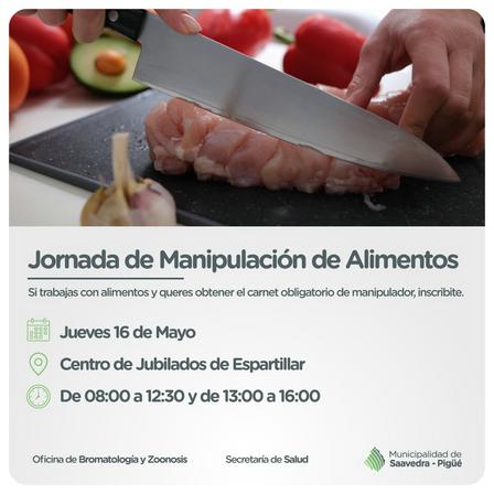 En el marco del Programa de Control y Prevención de Enfermedades transmitidas por alimentos, el Área de Bromatología, llevará a cabo esta capacitación en el Centro de Jubilados de Espartillar, el día jueves 16 de mayo, a las 8.00 horas.