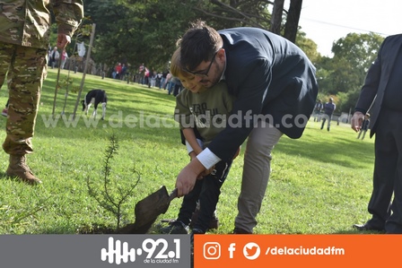 En el espacio del Monumento por los Caídos y Veteranos de la Guerra de Malvinas se procedió a su plantación.