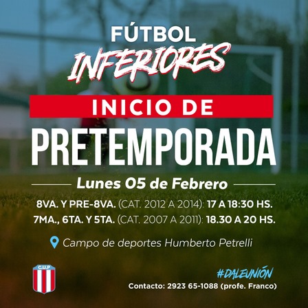 Para el día lunes 5 de febrero, por la tarde, en el Campo de Deportes Humberto Petrelli, los horarios serán los siguientes:
