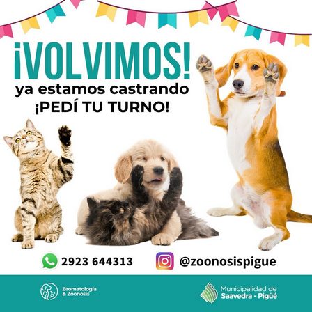 Los turnos, en la ciudad, para las castraciones, que son diarias, pueden llevarse a cabo a través del Whatsapp 2923 64 43 13.