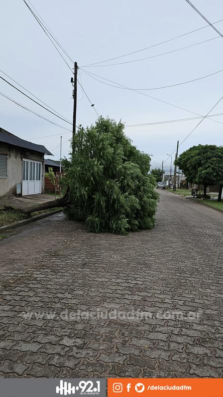 En la esquina de Belgrano con Alberto Primero se produjo la caída de un árbol como consecuencia del temporal registrado este sábado.