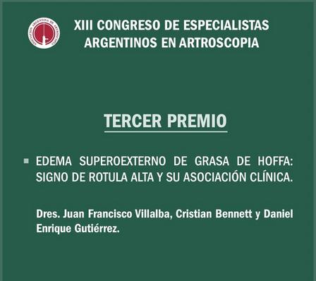 El trabajo del Dr. Juan Francisco Villalba, para este encuentro realizado en Mendoza, fue sobre el ‘Edema superoexterno de grasa de hoffa: signo de rótula alta y su asociación clínica’.