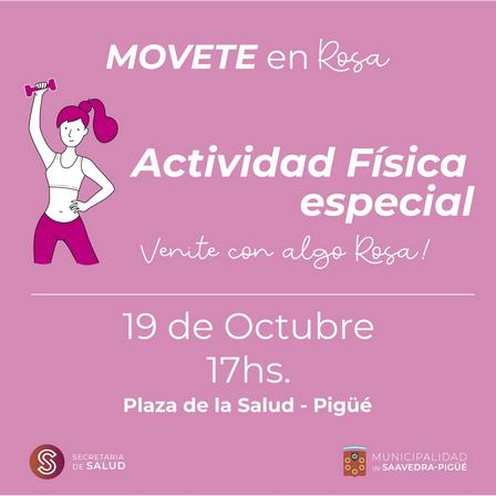 En el transcurso del día jueves, 19 de octubre, a partir de las 17.00 horas, se hará una actividad física especial, abierta a la comunidad, convocando a quienes quieran sumarse a acudir con algo de color rosa.