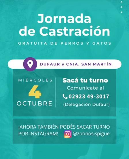 En Dufaur y Colonia San Martín de Tours, el miércoles 4 de octubre, hoy, habrá castración gratuita de mascotas.