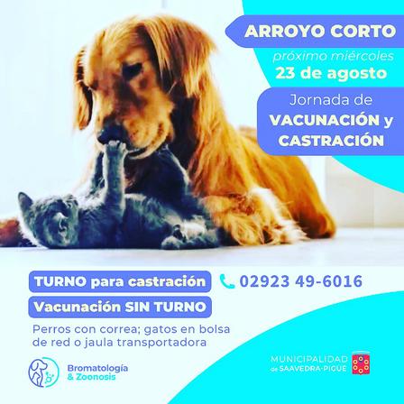 Este miércoles, en Arroyo Corto, se castraron 2 gatas y 1 gato, y se vacunaron varios perros y gatos.