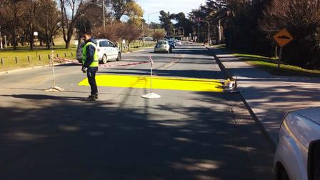 Realizan en el lugar tareas de pintura sobre reductores de velocidad.