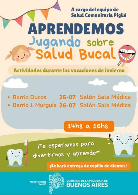 Las Promotoras de Salud dependientes del Ministerio de Salud de la Provincia de Buenos Aires realizarán talleres de Salud Bucal bajo el título de ‘Aprendiendo Jugando’.