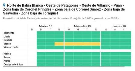 El área será afectada por vientos del sector norte con velocidades entre los 30 y 45 km/h, mientras que las ráfagas pueden superar los 90 km/h.