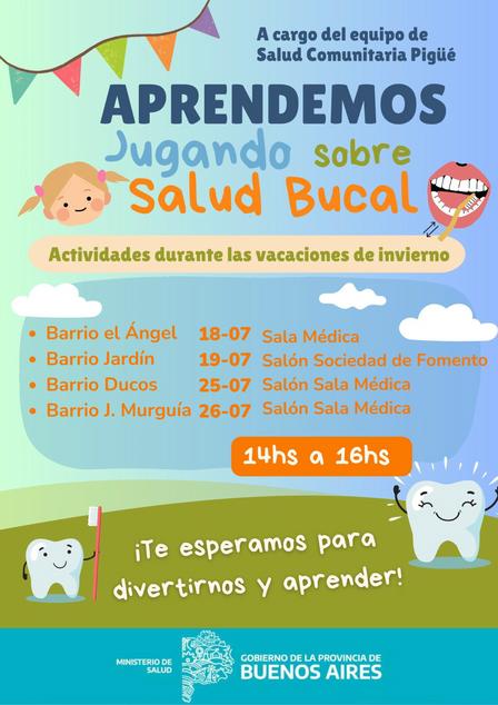 Las Promotoras de Salud dependientes del Ministerio de Salud de la Provincia de Buenos Aires realizarán talleres de Salud Bucal bajo el título de ‘Aprendiendo Jugando’.