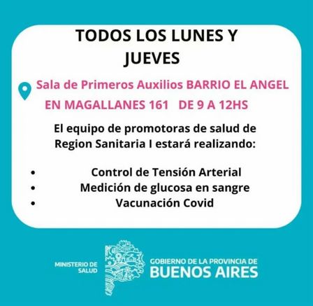 Habrá controles de presión arterial, vacunación anticovid 19, y medición de glucosa en sangre