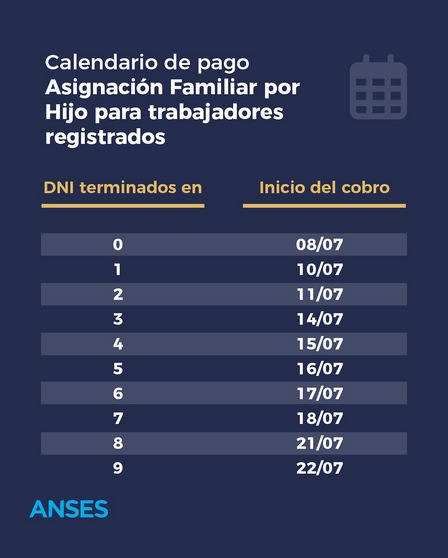 Hoy, lunes, 14 de julio de 2025, estarán llevándose a cabo los desembolsos para trabajadores registrados que perciben la asignación mensual con DNI finalizado en 3.