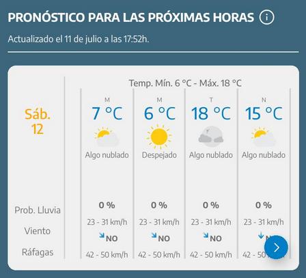 La temperatura más elevada, hoy, sábado, 12 de julio de 2025, en la ciudad, podría alcanzar los dieciocho grados centígrados.
