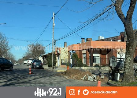 En el cruce de Humberto Primo con Alem se encuentran trabajando sobre el pavimento de allí que la señalización ha sido colocada para advertir a quienes circulan por el lugar.