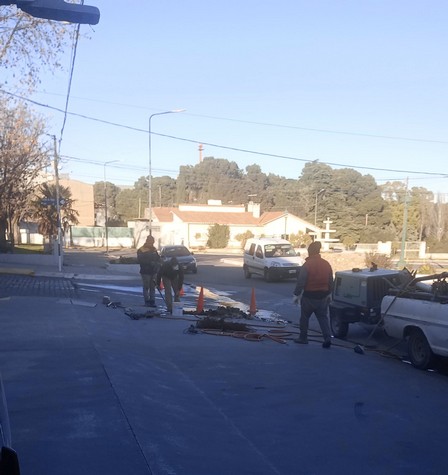 Hay nieve que levemente comienza a caer en la ciudad de Pigüé.