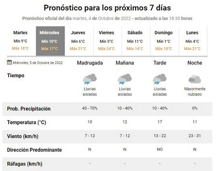 Durante el día de hoy, miércoles, en la ciudad, la temperatura más elevada podría alcanzar los diecisiete grados centígrados.