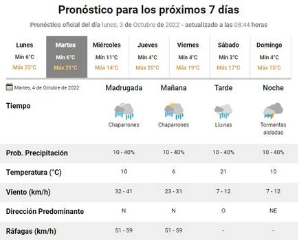 A la misma hora la sensación térmica anotaba, en la localidad, seis grados contando con la presencia de vientos fuertes.