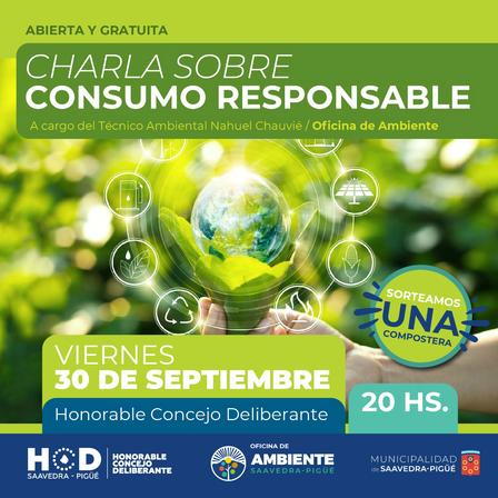 En el Honorable Concejo Deliberante del Partido de Saavedra - Pigüé se llevará a cabo la disertación a cargo del Técnico Ambiental Nahuel Chauvié, con acceso libre, desde las 20.00 horas.