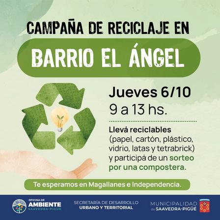 Este jueves, desde las 9.00 hasta las 13.00 horas, se llevará a cabo la campaña de reciclaje en el Barrio Ángel Monasterio de la ciudad.