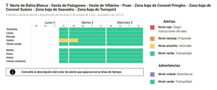 Se espera, de acuerdo al Servicio Meteorológico Nacional, la presencia de vientos que alcanzarían los 59 kilómetros por hora en la localidad de Pigüé.