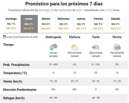 El Servicio Meteorológico Nacional estima la probable presencia de vientos de hasta 50 kilómetros por hora.