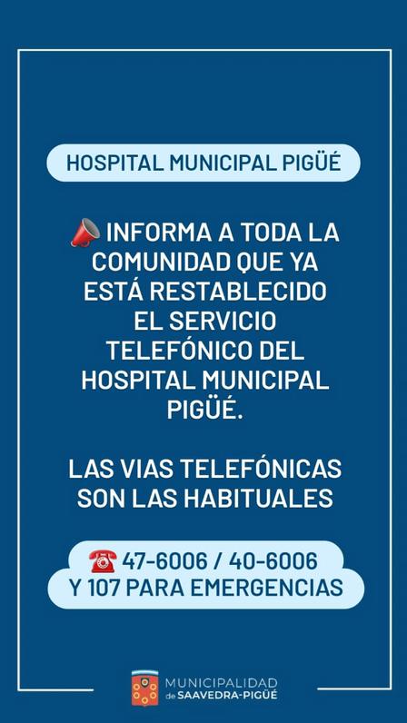 Tras los inconvenientes con el uso de las comunicaciones al conmutador del sanatorio público local ya se se lograron subsanar los problemas.