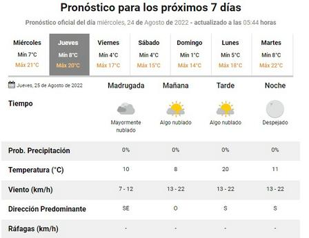 Se esperan, según el Servicio Meteorológico Nacional, la presencia de vientos de hasta 22 kilómetros por hora.
