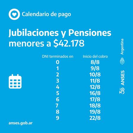 ANSES confirmó que hoy, jueves, siguen los pagos de jubilaciones y pensiones que no superan la suma de 42.178 pesos.