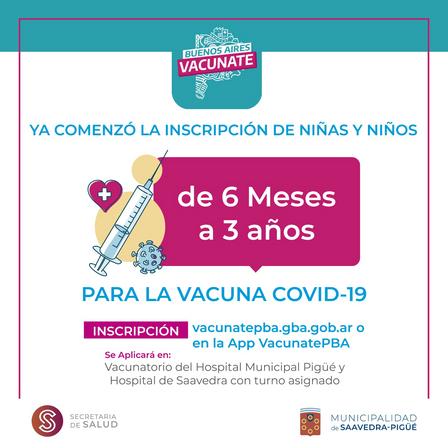 Ya comenzó la inscripción para niños y niñas de 6 meses a 3 años para la vacuna Anticovid19.
