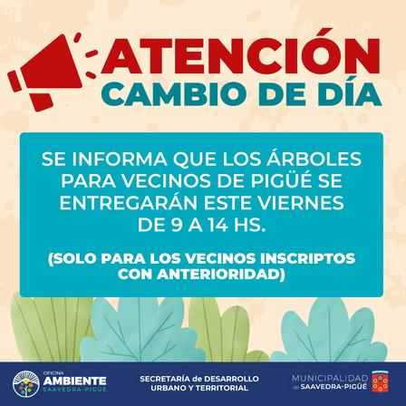 Este viernes, hoy, desde las 9.00 hasta las 14.00 horas, se llevará a cabo la entrega de árboles para vecinos de la ciudad que se han anotado con anterioridad.