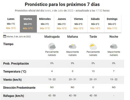 Durante el día de hoy, miércoles, en la ciudad, la temperatura más elevada podría alcanzar los catorce grados centígrados en la ciudad de Pigüé.