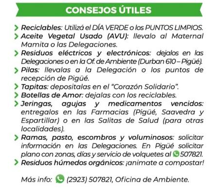 Medio Ambiente Municipal presentó consejos útiles para el descarte de los residuos eléctricos, los electrónicos, las tapitas plásticas, las pilas, las botellas plásticas, los reciclables, el aceite vegetal usado, y los medicamentos vencidos.