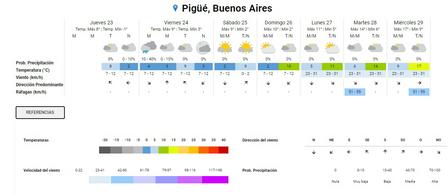 Pigüé tendría registros bajos de la temperatura con vientos de hasta 12 kilómetros por hora.