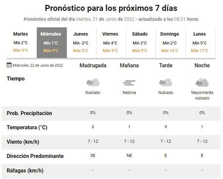 Se esperan vientos calmos, con la posible presencia de neblina, y temperaturas bajas.