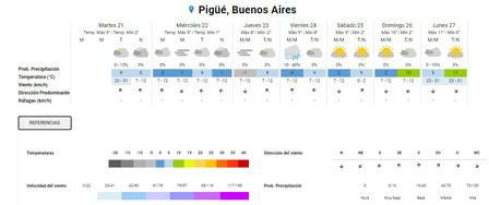 La sensación térmica, a la misma hora, en la localidad de Pigüé, era de – 5 grados.