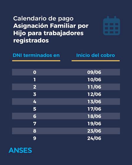Hoy, martes, 10 de junio de 2025, estarán llevándose a cabo los desembolsos para trabajadores registrados que perciben la asignación mensual con DNI finalizado en 1.
