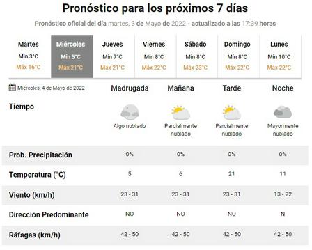 Se esperan vientos, de acuerdo al Servicio Meteorológico Nacional, cercanos a los 50 kilómetros por hora.
