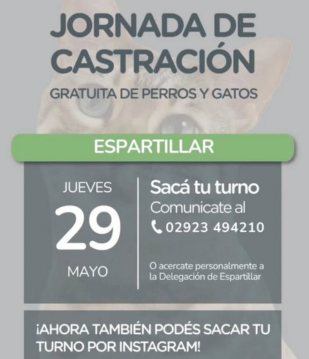 En Espartillar, este jueves 29 de mayo de 2025, se llevará a cabo una nueva castración gratuita de mascotas.