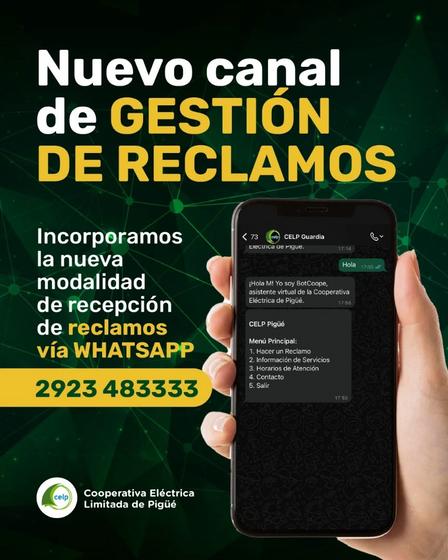 La Guardia de la Cooperativa Eléctrica de Pigüé cuenta con otra vía de comunicación para registrar la recepción de reclamos y consultas.