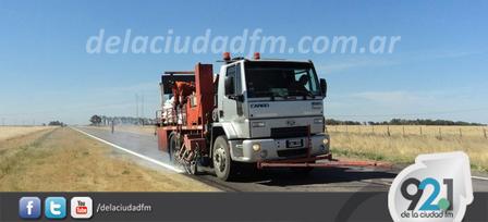 El informe de prensa expresa que "el 19º Distrito – Bahía Blanca  de la Dirección  Nacional de Vialidad realiza trabajos de demarcación horizontal de ejes y de bordes, en la Ruta Nacional N° 33 entre Bahía Blanca y Pgüé".