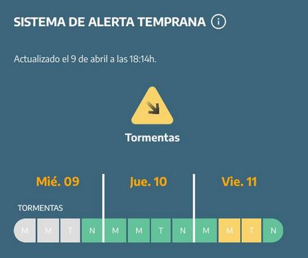 Emitido luego de las 17.00 horas el aviso del Servicio Meteorológico Nacional advierte acerca de posibles tormentas fuertes para esta tarde.
