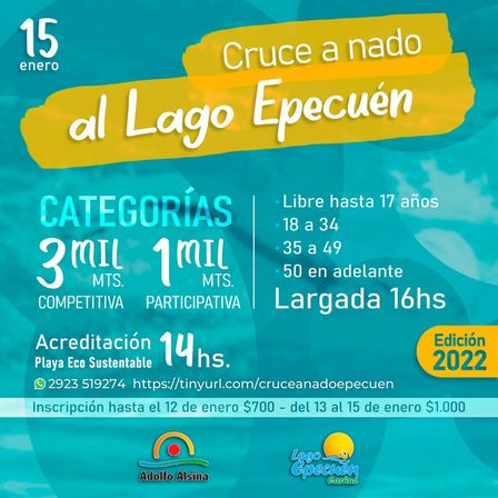 Llega el Cruce a Nado al Lago Epecuén 2022 con registro de inscripción previo por https://tinyurl.com/cruceanadoepecuen