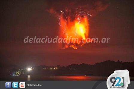 El portal de Minuto Uno afirma que "el volcán chileno Calbuco, situado a 1.000 kilómetros al sur de Santiago, volvió a entrar este jueves en erupción, por segunda vez en pocas horas, tras la cual se mantiene la alerta roja en la región.