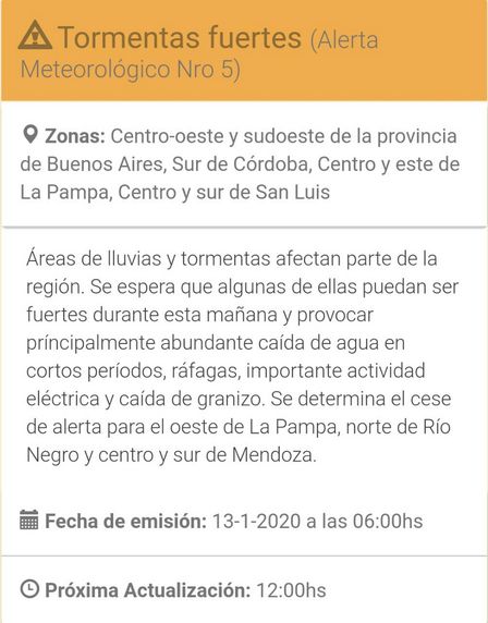 Se espera que algunas de ellas puedan ser fuertes durante esta mañana y provocar principalmente abundante caída de agua en cortos periodos, ráfagas, importante actividad eléctrica y caída de granizo”.