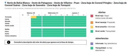 La advertencia indica que “el área será afectada por vientos del sector norte con velocidades entre 35 y 50 km/h, y ráfagas que pueden superar los 70 kilómetros por hora”.