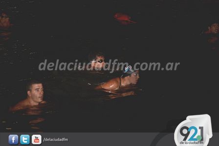 Deportistas de la zona se dieron cita en el balneario Lago del Monte para participar de la 1° Travesía Nocturna de Natación.